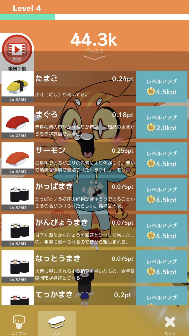 溜まったネコポイントは、スシやニンゲンと交換して、